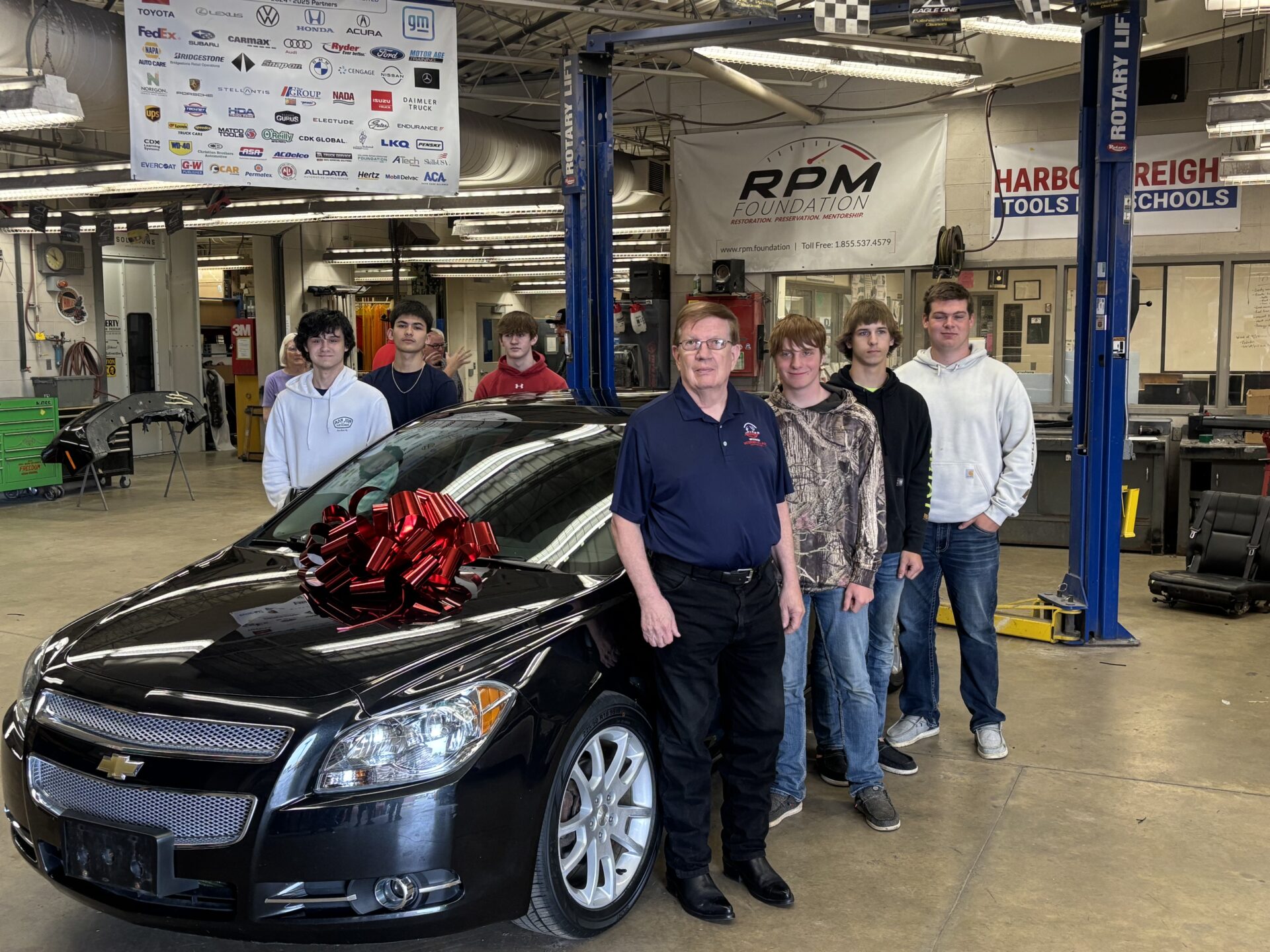 This year, students put their skills to use refurbishing a 2012 Chevy Malibu for Marine Corps veteran Thomas Andrejeski, who served from 1976-1985. The project included changing out oil and air filters, replacing the brakes, tires and serpentine belt, repairing damage to the rear bumper, and more. Jonny Bradle, a former student who owns a detail shop, surprised Abitz and students with a free buff, polish and detail on the car as a final touch.